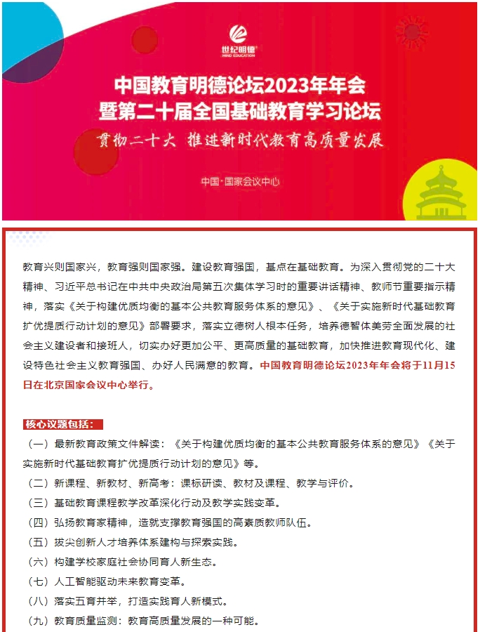 中国教育明德论坛2023年年会暨第二十届全国基础教育学习论坛